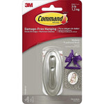 Command Large Traditional Plastic Hook, Brushed Nickel, 1-Hook, 2-Strips, Organize Damage-Free