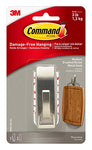 Command Metal Hooks are available in a variety of styles and finishes to match your decor. They also come in a variety of sizes and hold a surprising amount of weight up to five pounds! Forget about nails, screws and tacks, Command Metal Hooks are fast and easy to hang! Using the revolutionary Command Adhesive, Command Metal Hooks stick to many surfaces, including paint, wood, tile and more. Yet, they also come off leaving no holes, marks, sticky residue or stains so taking down or moving your Command Metal Hooks is simple and hassle free. And re hanging your hooks is as easy as applying a Command Refill Strip, so you can use them again and again!INCLUDES – 1 brushed nickel hook, 2 large strips, 1 hook holds 5 lbsORGANIZE DAMAGE-FREE- Say goodbye to holes, marks, or sticky residue on your walls, doors, cabinets, or closets; Command Hooks by 3M are easy to use and help keep your walls looking beautiful.NO TOOLS REQUIRED- Hang hats, bags, dog leashes, scarves, and accessories where you want without nails or a hammer.STRONG AND VERSATILE- Command Hooks hold strongly on a variety of indoor surfaces including painted walls, finished wood, glass, tile, metal, and other smooth surfaces.REMOVES CLEANLY- Redecorate when inspiration strikes; These wall hooks leave no sticky adhesive behind; Perfect to use in your college dorm, apartment, home, and office.