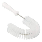 Cleaning between and around pipes is made easier with the curved design of the hook brush. The hand grip utilizes a threaded recess on the end that allows another handle to be connected to the brush. When connected to a Vikan handle, the extended hook brush allows comfortable cleaning of pipes in high or difficult to REACH areas.