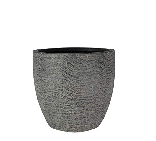 The HC Companies 15 Inch Aspen Round Decorative Planter - Fiberglass Planter with Grooved Texture and Drainage Plug
